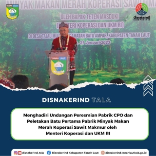 01 Februari 2023 Disnakerind Tanah Laut DISNAKERIND 230 xSelasa, 31 Januari 2023, Bupati Tanah Laut mengundang Disnakerind dalam Acara Peresmian Pabrik CPO dan Peletakan Batu Pertama Pabrik Minyak Makan Mera...