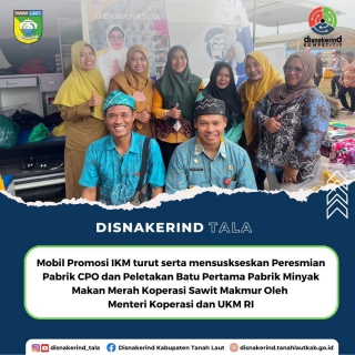 01 Februari 2023 Disnakerind Tanah Laut DISNAKERIND 253 xDalam rangka turut mensukseskan Acara Peresmian Pabrik CPO dan Peletakan Batu Pertama Pabrik Minyak Makan Merah Koperasi Sawit Makmur Oleh Menteri Kop...